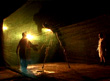 spektakl jest pięknie wpisany w przestrzeń i pięknie zrealizowany, dwukrotnie przestrzeń zostaje przeorganizowana dzięki ruchomej scenografii, ludzie na szczudłach zapalą na nawierzchni ogień, zagrają cienie,