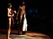 Is your heart strong? You'd better have it strong to watch El Niňo, a second part of trilogy about humans condition, a cycle of modern tragedies by polish theatre group A Part. On a car park of Saint-Etienne castle, in a scenery remaining a storage-yard of post-apocalyptic wasteland, we were allowed to feel an atmosphere of atrocities and the world technological catastrophes. On this forbidden area, guarded by gloomy, semi-naked man wearing military boots, trouser and protecting masks, performance scenes change fluently one to another. A gallery of characters populating this world, man and woman wearing coats bringing to mind the Gestapo uniforms will step in erotic plays, obscene and brutal; will commit a sordid crimes. We can see bodies pulled on ground in a plastic bags. Silent hangmen in a white gowns and masks torture a rippled child. Weird characters on stilts will set the ground on fire. An innocent couple will be undress before it will be sent to get a shower, to go up with smoke. Staging of the performance is unimpeachable: the actors performance keeps in suspense, due to a mobile design and construction of the stage the space is well-organized. The music and the light perfectly harmonize with a body language of this emotion-filled wordless show.