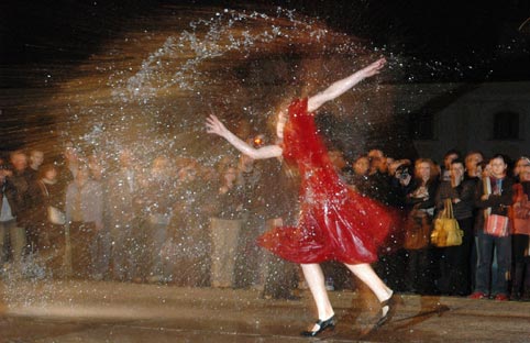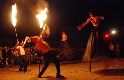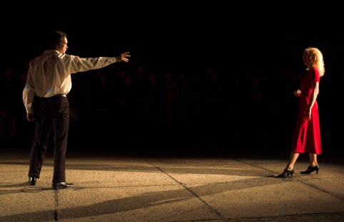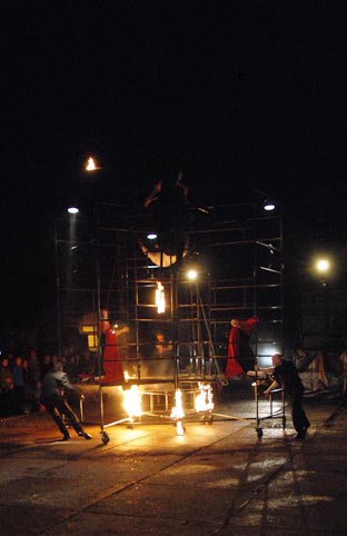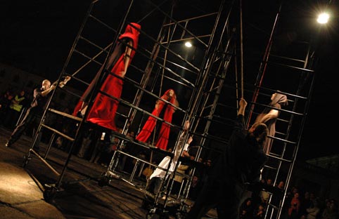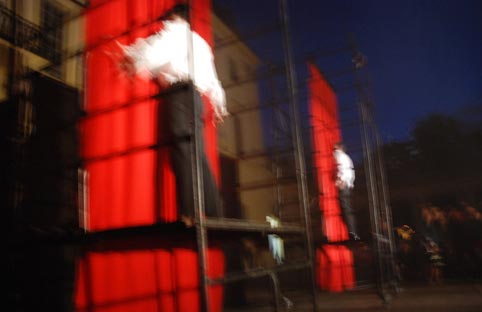 na dziedzińcu Pałacu Branickich w Białymstoku podczas Dni Sztuki Współczesnej. Więcej o spektaklu Faust zobacz tutaj.