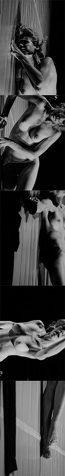 Ale choć bohaterka, poprzez symboliczny pogrzeb czarnej koszuli i spodni, pozbyła się ograniczającego ciała, to nadal nie czuła się wyzwolona. Powtarzała wykonywane wcześniej gesty, mocowała się sama ze sobą. Pozbywanie się kolejnych więzów nie było łatwym zadaniem. Pończochy kneblowały usta i dłonie, należało zrzucić z siebie wszelkie ograniczenia, pogrzebać ciało, na które nałożono ciasne konwencje i tabu. Rytualny mord dokonał się poprzez pociągnięcie czerwoną szminką po szyi. Obrzęd pogrzebowy dopełniony został dokładnym ułożeniem owej koszuli i spodni. Pozostała czysta dusza, której wyrazem stało się nagie ciało aktorki. Wyzwolona z ciasnego kombinezonu okazała się jednak pusta, bez wyrazu.