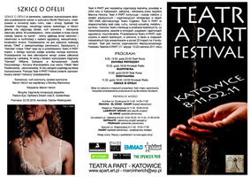 Teatr A PART festival is winter complex presentation of actual and archive works by Teatr A PART: available indoor (live) and previous and actual outdoor and site specific (video).